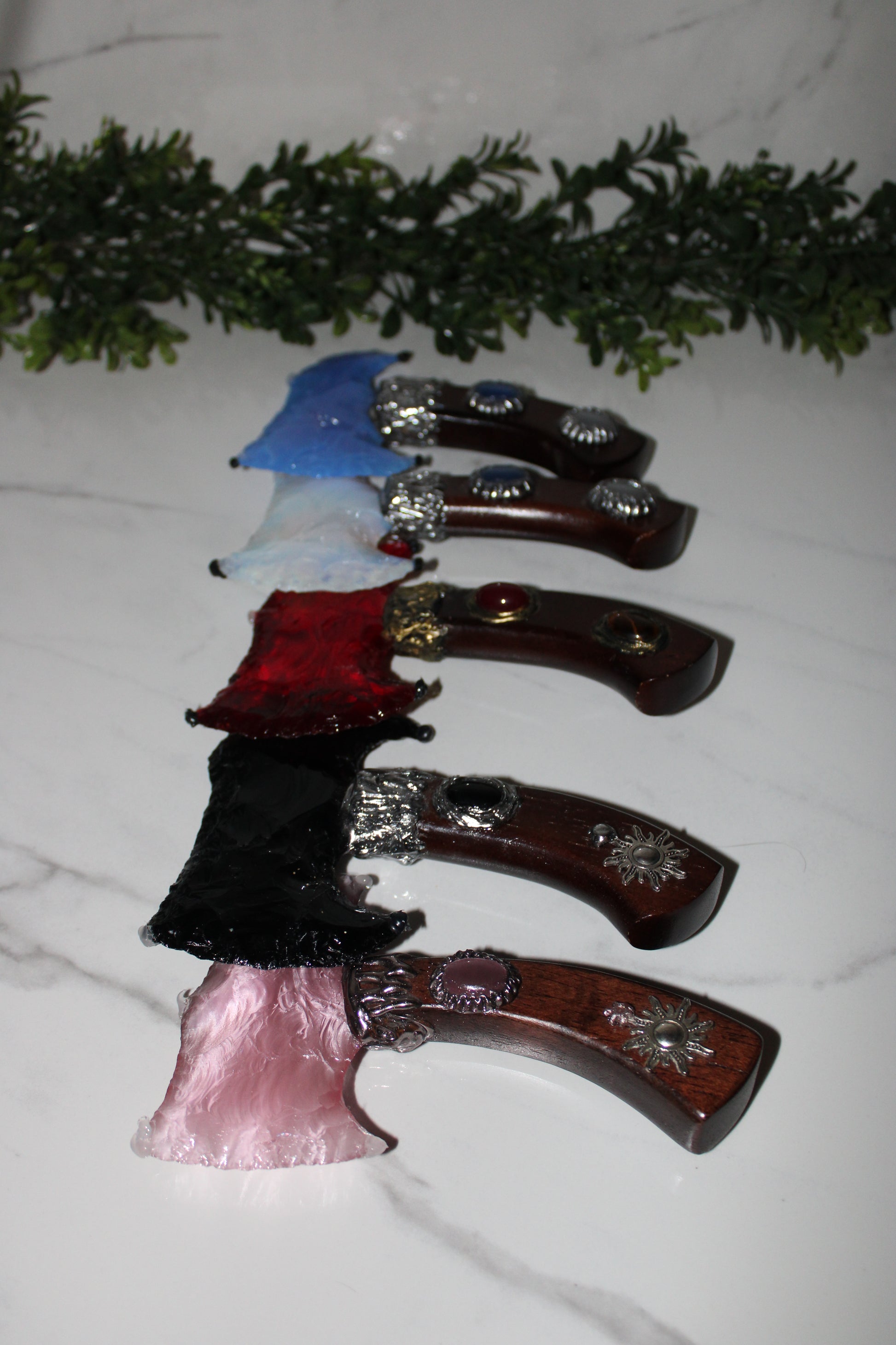These crystal axes are meant to be used as a display piece/ decorative item NOT meant to utilize for cutting/ chopping.